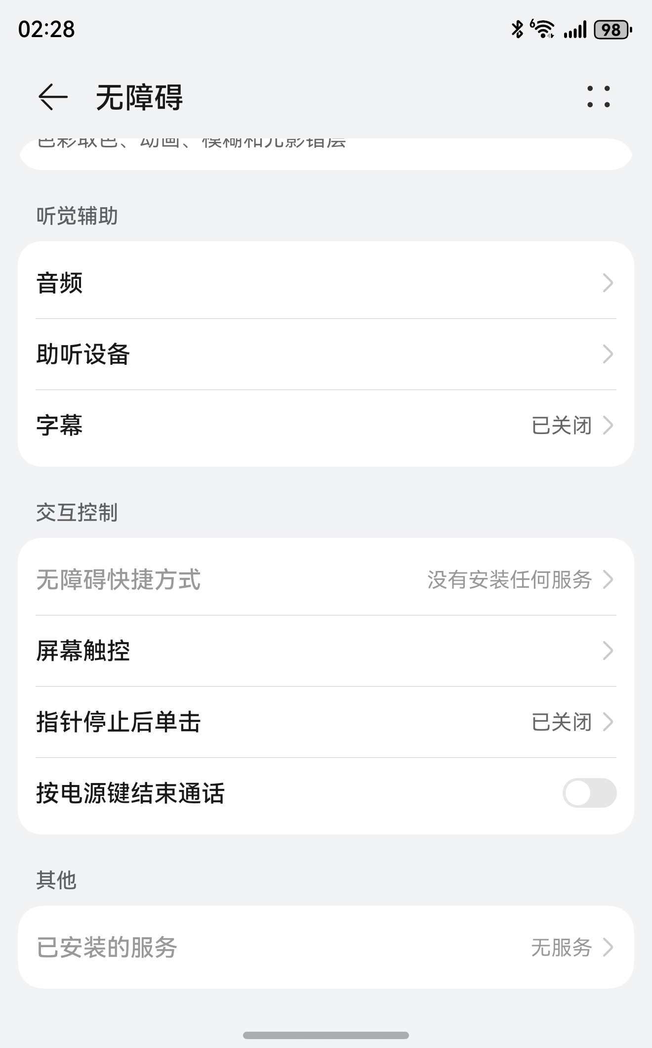 - 在「安全」或「隐私」页面中,找到「无障碍」选项,点击进入。